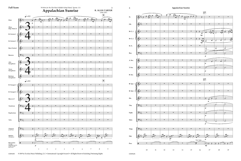 As the title implies, Appalachian Sunrise is written to portray a peaceful sunrise in the beautiful Appalachian Mountains. This piece provides many teaching moments for technique and musicianship and is a great addition to the concert band repertoire.