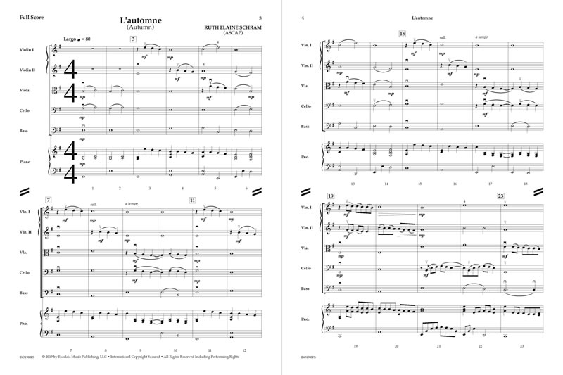 L’automne is French for “the Autumn.” This piece is meant to depict the different aspects of this beautiful season, as it begins with slightly cooler breezes and a break from summer’s heat. Young musicians will enjoy the lush harmonic palette and beautiful countermelodic lines. Perfect for any concert event.