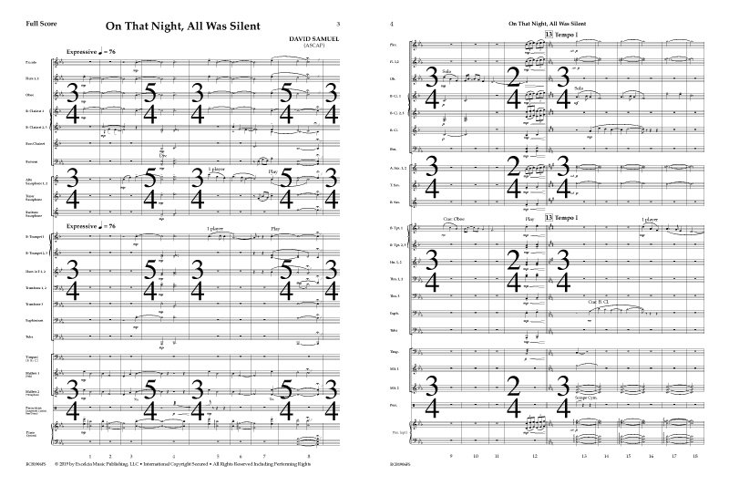 Jazz pianist David Samuel provides a completely new setting to the classic Silent Night carol. The theme opens with a Clarinet solo with counter melodies stated from other parts of the melody. With the use of creative twists in themes at every turn, audiences will be captivated by this familiar, yet original, musical journey.