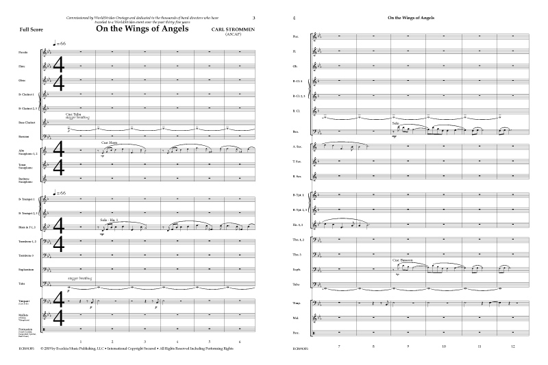 Full of lush harmonies and beautiful melodic lines, On the Wings of Angels, composed by acclaimed composer Carl Strommen, will both excite and challenge players. Written for the annual WorldStrides Onstage event, On the Wings of Angels has all of the flowing lines that we have come to expect with Carl’s symphonic works. Whether for a special occasion or a selection on a concert program, musicians and audiences alike will enjoy On the Wings of Angels.